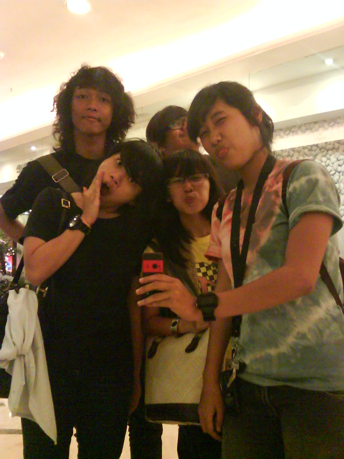 Gue duduk di sebuah tempat di foodcourt yang gue kenal bersama seorang lelaki bongsor berpakaian serba hitam-hitam beserta kamera kesayangannya, sebut saja si Hitam; dua orang perempuan yang sibuk majalah dan kemudian berdebat tentang gossip selebritis di dalamnya, sebut saja mereka si Kuning dan Hijau; dan seorang perempuan tomboy berjaket orange dan bersendal jepit yang sibuk mencari sesuatu di dalam ranselnya, dia si Orange.